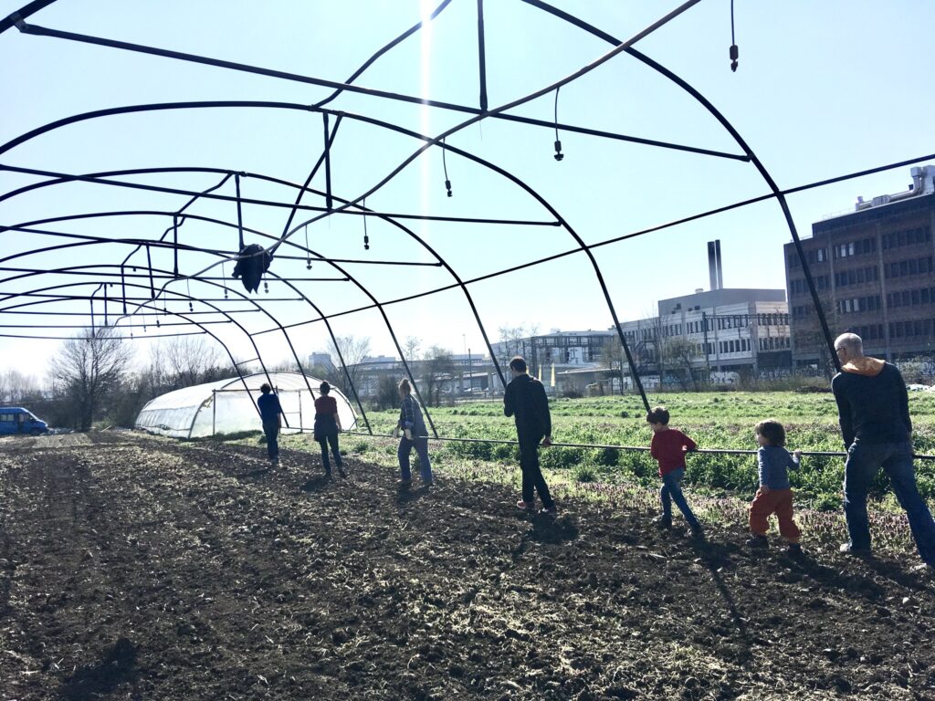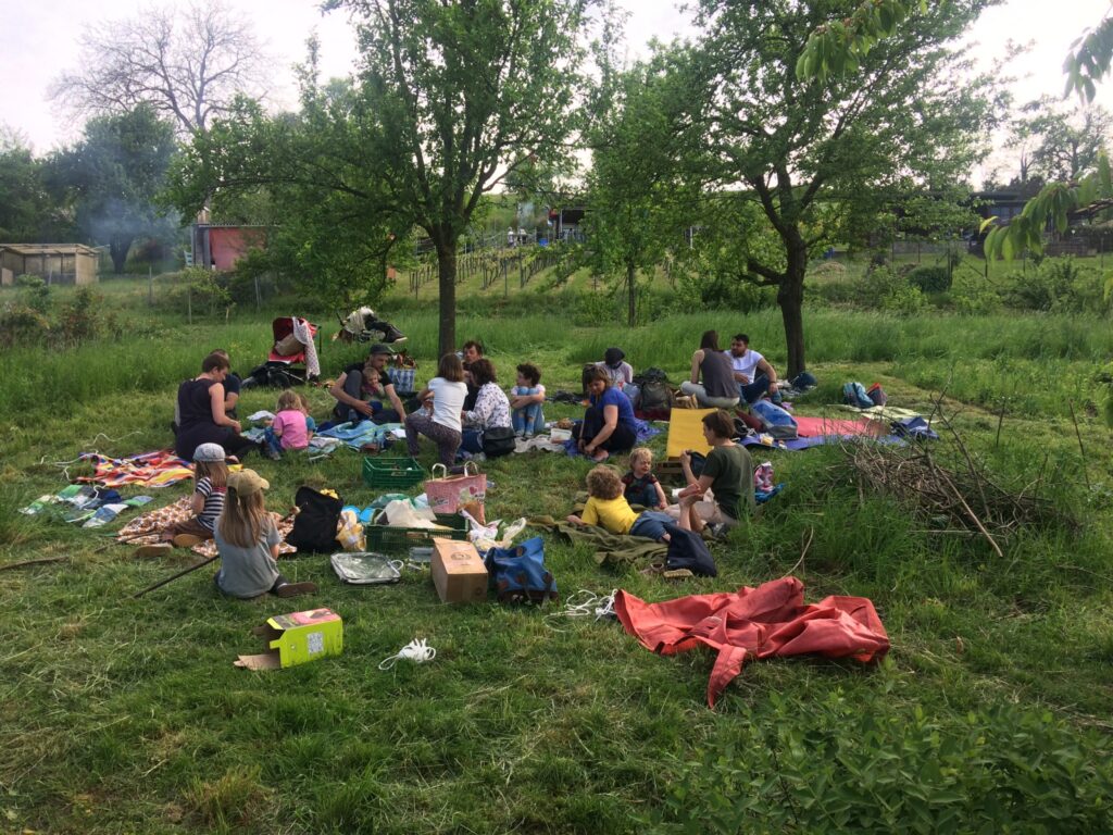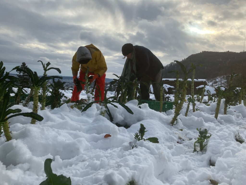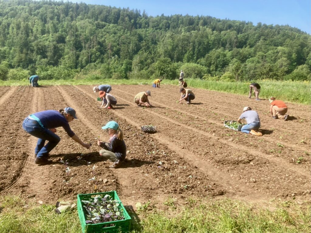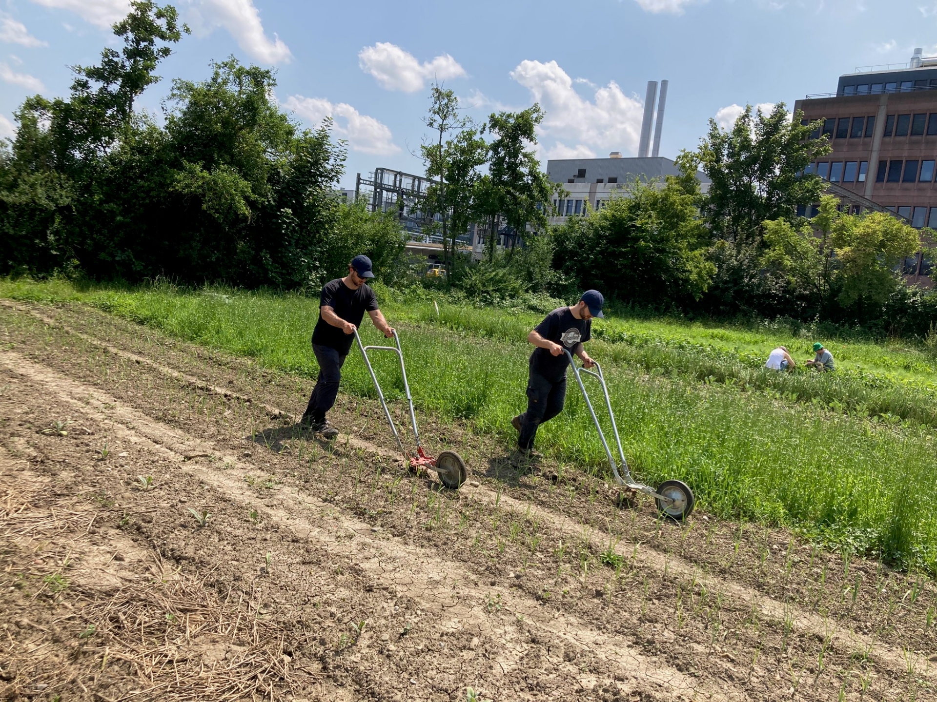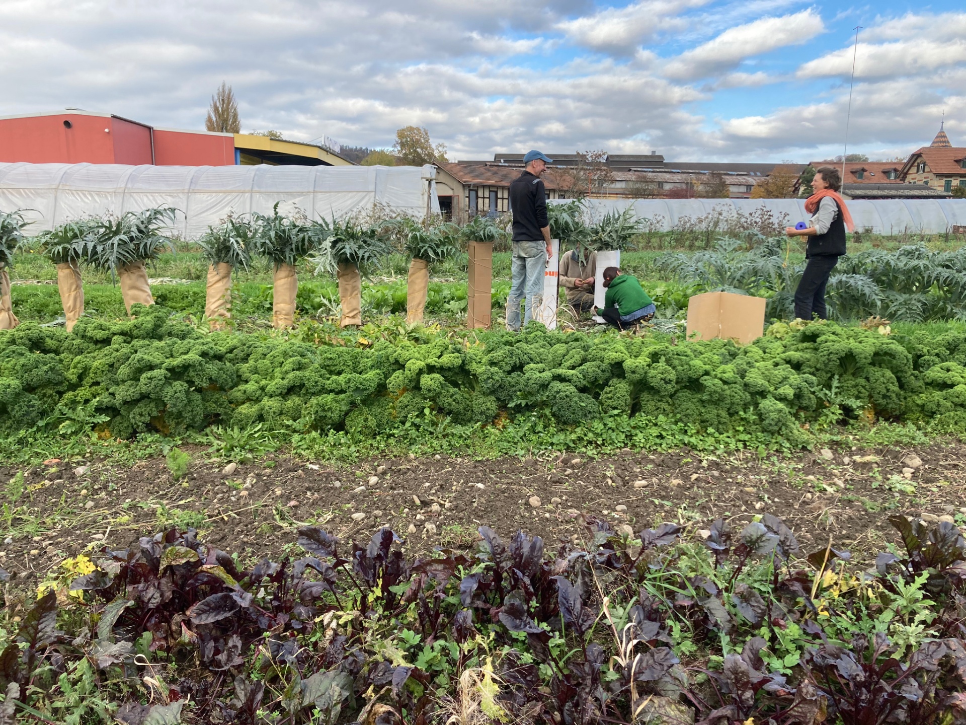 Grosse Pause im Obst- und Beerengarten Herrenbergli.Tunnelgerüst VerschiebeaktionKichererbsenernte.Urbarmachung von totem Boden.Naschen im Obst- und Beerengarten Herrenbergli.Bücken und niederknien im Ifang, Schlieren.Rossmist schippen.